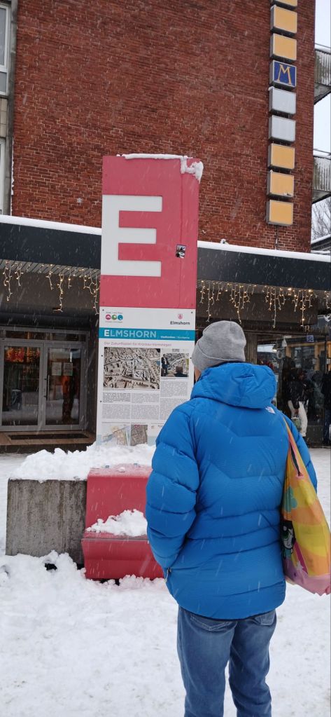 Il neige à Elmshorn. La ville est calme et blanche. Les rues et les toits sont couverts de neige.